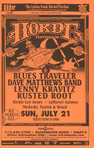 | 7/18/1996 | MMW | H.O.R.D.E. Festival, Mud Island Amphitheater, Memphis, TN | | | |