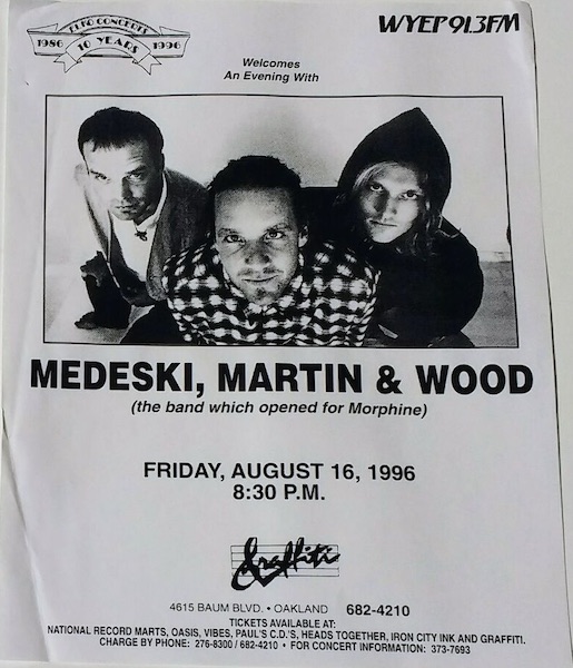 | 5/6/1996 | MMW | Metropol, Pittsburgh, PA | One Set Only: Sequel, Lifeblood > Think, Jelly Belly > Is There Anybody Here That Love My Jesus; Opened for Morphine; not verified | | s |