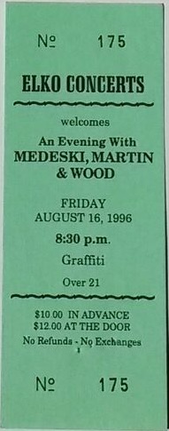 | 8/6/1996 | MMW | Zephyr Club, Salt Lake City, UT | | | s |