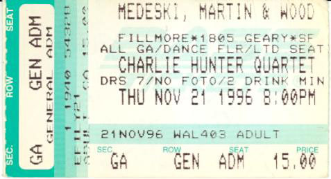 | 5/22/1996 | John Medeski | Charlie Hunter | with Bob Moses | | s |