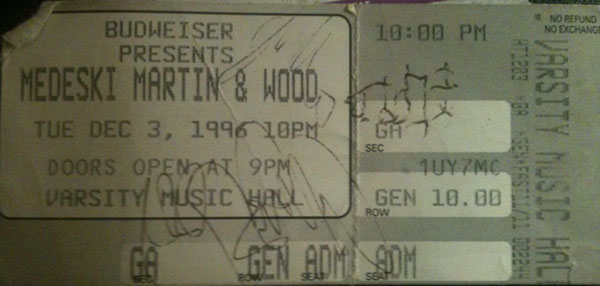 | 5/5/1996 | MMW | Newport Music Hall, Columbus, OH | One Set Only: The Lover > Henduck > Dracula > Night Marchers, Chubb Sub; Opened for Morphine; not verified | | s |