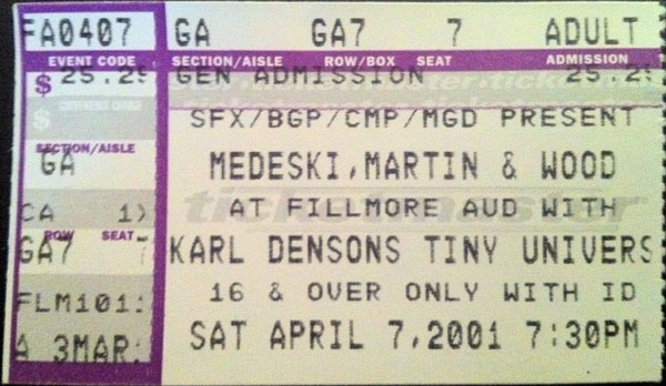| 4/25/2001 | MMW | The Joint @ Hard Rock Hotel, Las Vegas, NV | Karl Denson's Tiny Universe opened for MMW | | |