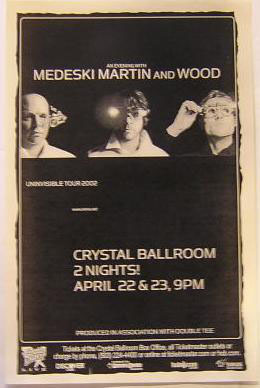 | 3/19/2002 | MMW | Turntable Sessions, Boulder Theater, Boulder, CO | | | |