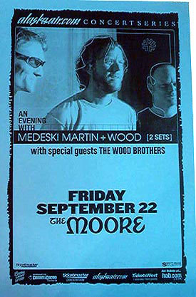 | 11/10/2006 | MMW | Medeski Scofield Martin & Wood, 9:30 Club, Washington, DC | Set 1: Hanuman, Little Walter Rides Again, Bass'n'Organ > Tequila & Chocolate > Down The Tubes > Cachaça > In Case The World Changes Its Mind > Drum Solo > Miles Behind > Telegraph > Bass Solo > Tootie Ma Is A Big Fine Thing; Set 2: Down The Tubes > Bass Solo > New New Orleans > Drum Solo > A Go Go, Guitar Intro > Southern Pacific > Open Intro > Deadzy > What Now > Down The Tubes > Hottentot > Guitar Outro; Encore: Legalize It | 167:02 165:32 165:32 | 80925 t 80319 t 80720 t s |