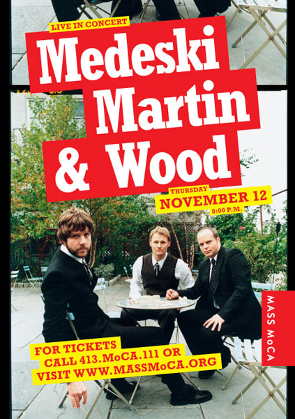 | 11/12/2009 | MMW | MASS MoCA, North Adams, MA | Set 1: Improv > Improv > Improv > Piano Solo > Improv, Bass/Hand Drum Improv > Improv > Drum Solo; Set 2: Jean's Scene, Amish Pintxos, Walk Back, Bass Solo, Padrecito, Wonton, Undone; Encore: Amber Gris | 145:06 145:06 | 102558 t 102559 t s |